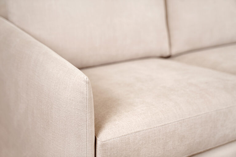 Kiln-dried hardwood frame. Sinuous spring system. Eco-friendly construction. 2.2 gel infused, high resiliency foam core seat cushions wrapped in soft foam. Fibre filled back cushions. Loose seats and loose backs. Available in fabric and leather. Bench-made in Canada