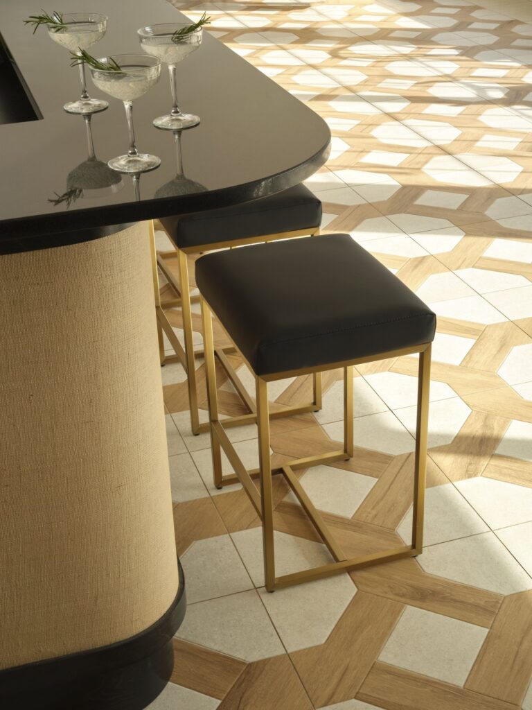 This beautiful stool has unparalleled panache thanks to its flashy metal legs. It also manages to look delicate and fits perfectly under the island or countertop for a sleek look. You can even adapt this model to your interior by selecting the metal color. Two beautiful options are available: gold or silver.